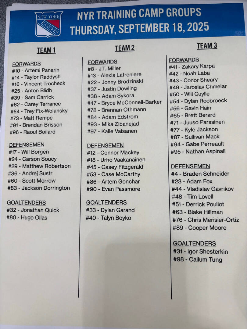 Rangers training camp roster has dropped. Sixty-one players invited.